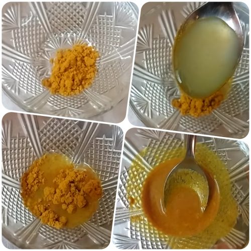 - Mix half teaspoon of kasturi turmeric with rosewater or honey and form paste.